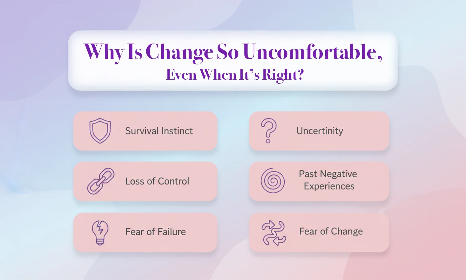 There is no single answer, but many people struggle with the fear of change because it is connected to uncertainty and loss of control. Since life constantly evolves, learning to handle change is an important skill for long-term confidence and well-being.